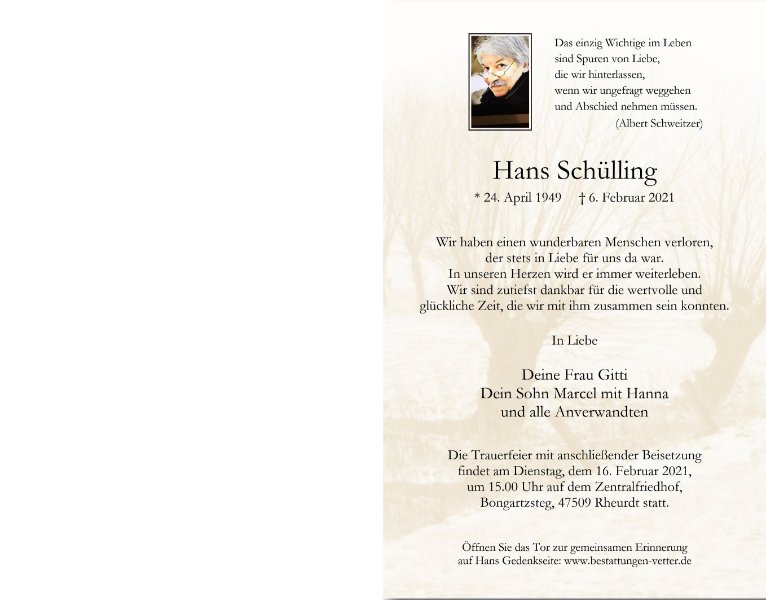 Die vielen Beweise der Freundschaft und Verbundenheit durch Freunde, Weggefährten und Familie haben gezeigt wie wertvoll Hans für jeden Einzelnen war. Freundschaft aus schönen Tagen hat sich auch in der dunklen Zeit bewährt und uns Halt und Unterstützung gegeben.