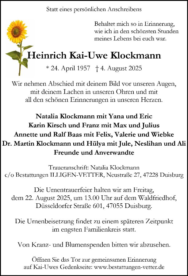 Mein Großer… Du hast mich fast mein ganzes Leben lang begleitet. Erst als Chef, dann als Mentor, dann als Kollege und Ratgeber…Aber die schönste Verbindung war unsere Freundschaft. Mein Großer… Du bist nicht weg! Früher warst Du an einem Ort. Jetzt bist Du überall…